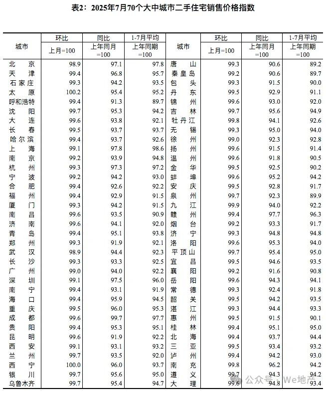 先来看统计局的数据。7月各线二手房房价悉数环比下降,四大一线城市中北京降幅1.1%领跌全国,上海0.9%,广州1%,深圳0.9%。唯一环比上涨的“独苗”,是太原。